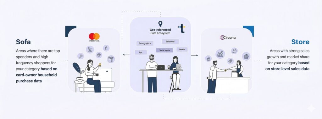 Analyzes behaviors in the area, bringing consumers from sofa to store. It transforms location and real context data into advertising activation via CTV, DOOH, desktop, and mobile, in a measurable way without depending on cookies.